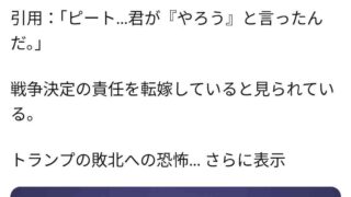 嫌儲トランプ氏、戦争を始めたのは隣にいるヘグセス長官だと会見中に批難