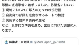 嫌儲小泉防衛大臣、邦人輸送のため自衛隊機の派遣準備に着手