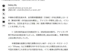 嫌儲【高市朗報】TSMC、1~3月の純利益は予想上回る、イラン戦争も関係なし、AI特需でウホウホ