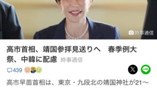 エッヂ高市早苗「すまん、やっぱ靖国神社参拝無理やわw」