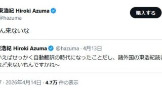 エッヂ東浩紀「そういえばせっかく自動翻訳の時代になったことだし、諸外国の東浩紀読者から質問など来ないもんですかね〜」