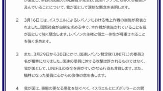 嫌儲防衛省、イスラエルに苦言「主権尊重しろ」