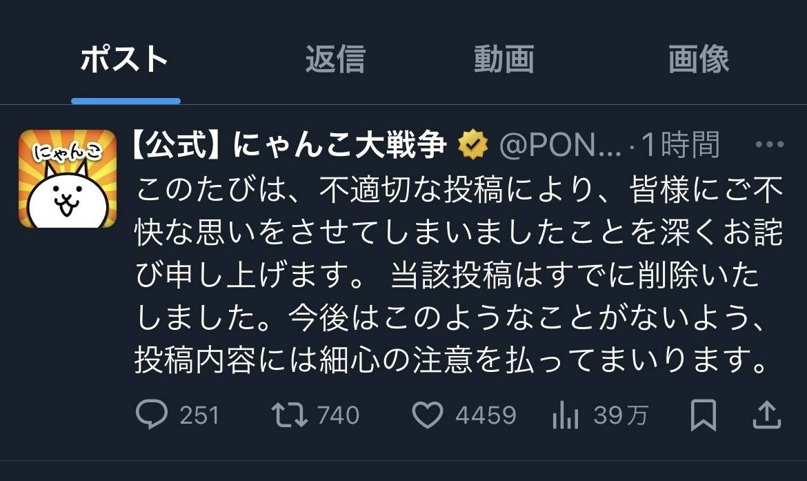 - にゃ~言ってたやつが急に深くお詫び申し上げます。とか言うの想像するとちょっと面白い