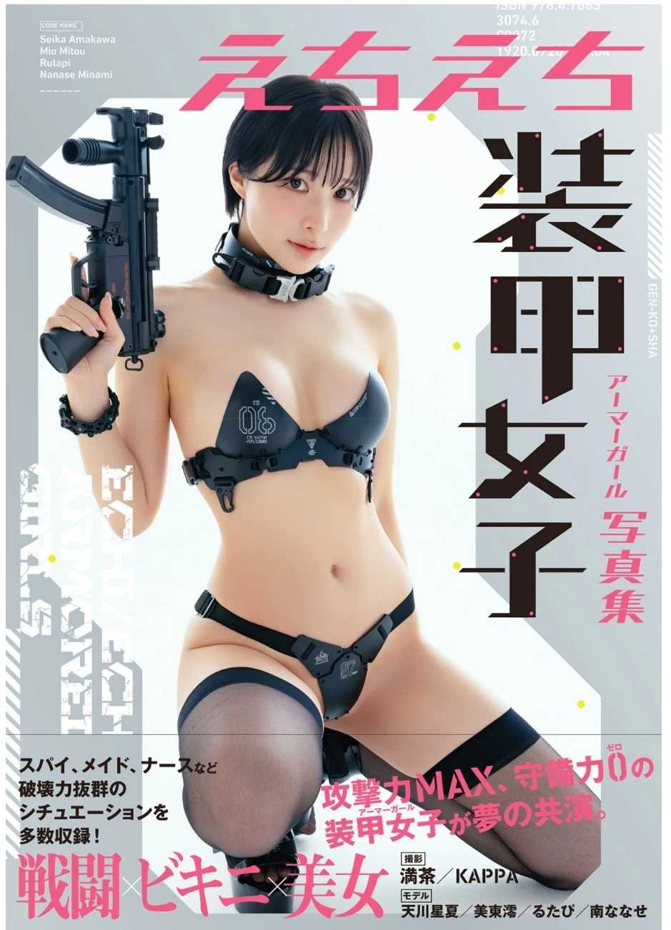 本作は、玄光社の人気オムニバス写真集シリーズの最新作。今回挑戦したテーマは「戦闘×ビキニ×美女」。その名に相応しいモデルである天川星夏、美東澪、るたぴ、南ななせの4名が共演。攻撃力MAXなのに、守備力はゼロに等しい「えちえち」な装甲ビキニに身を包んだ、シリーズ史上最大の露出といえる圧巻の1冊となっている。