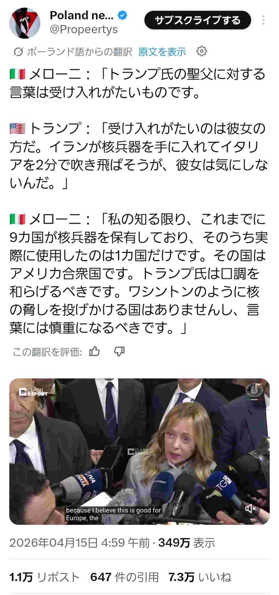 まるでイタリアの高市早苗だ!!😤 - 112 : 2026/04/16(木) 00:15:09.23 ID:KOiyScyC0