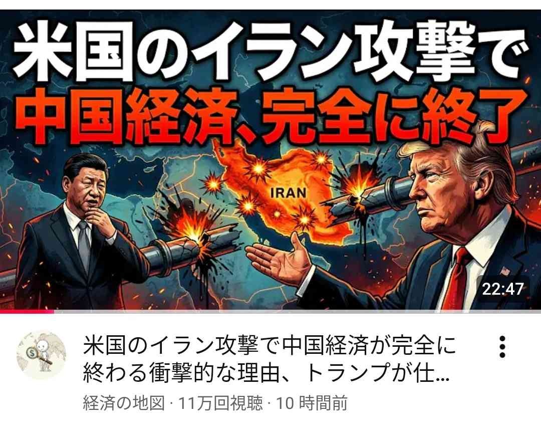 米国のイラン攻撃で中国経済が完全に終わる衝撃的な理由、トランプが仕掛けた恐ろしい罠2026年、テヘランに突き刺さった精密誘導ミサイルが、なぜ北京の心臓を止めることになったのか?トランプ大統領が仕掛けた「イラン攻撃」という名の巨大な罠、その裏に隠された中国経済崩壊のシナリオ。今、世界秩序が塗り替えられる衝撃の瞬間を、数字と事実で徹底的に解き明かします。【動画の要約】米国とイスラエルによるイランへ...www.youtube.com- 42 : 2026/03/01(日) 06:55:07.59 ID:us5O94S0M