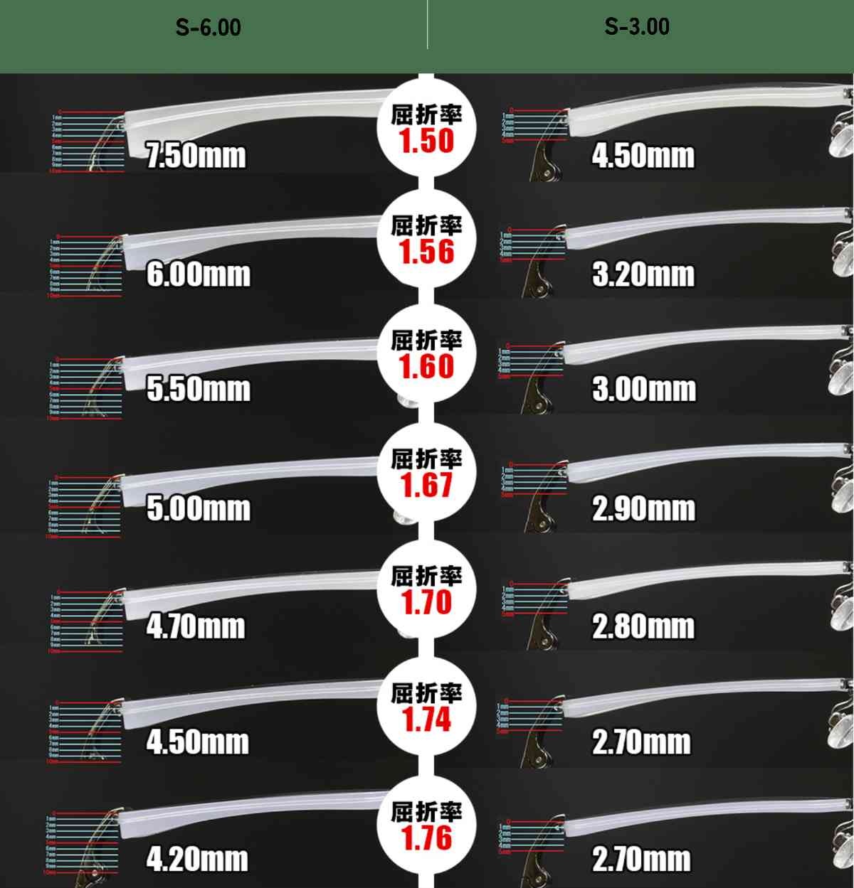 - 例えば眼鏡市場は1.74まではタダで薄くしてくれるというか同一価格だが、
