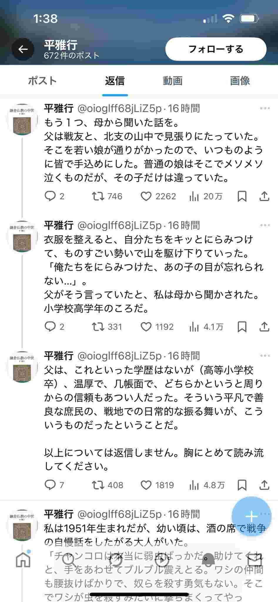 「爺ちゃんが日中戦争時、通りがかりに少女よく集団レイプしてたってw」→炎上→貴重な語り部の口を塞ぐな→大炎上