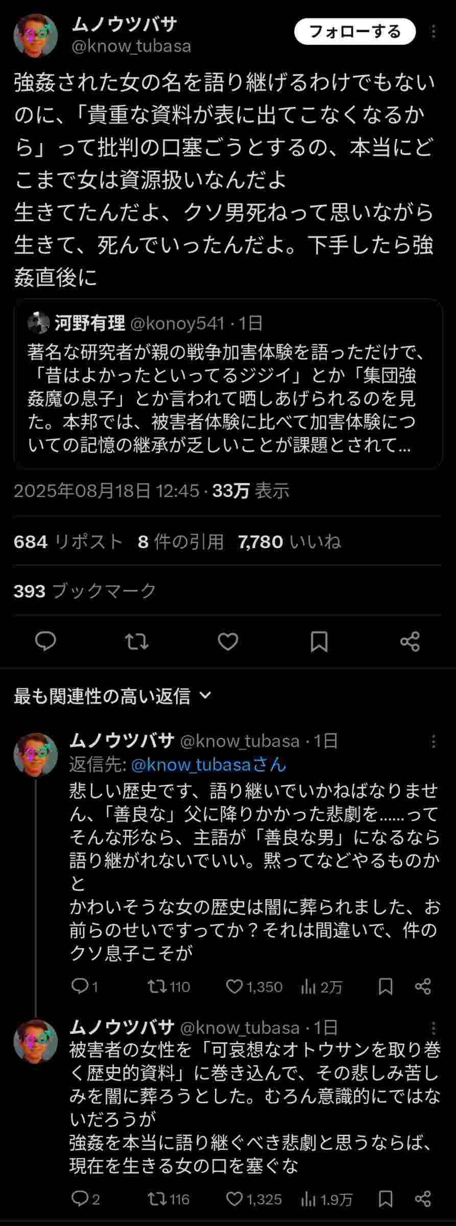 ネトウヨの中でもこいつら異質だよな - 98 : 2025/08/19(火) 21:25:11.17 ID:WJH65aPg0