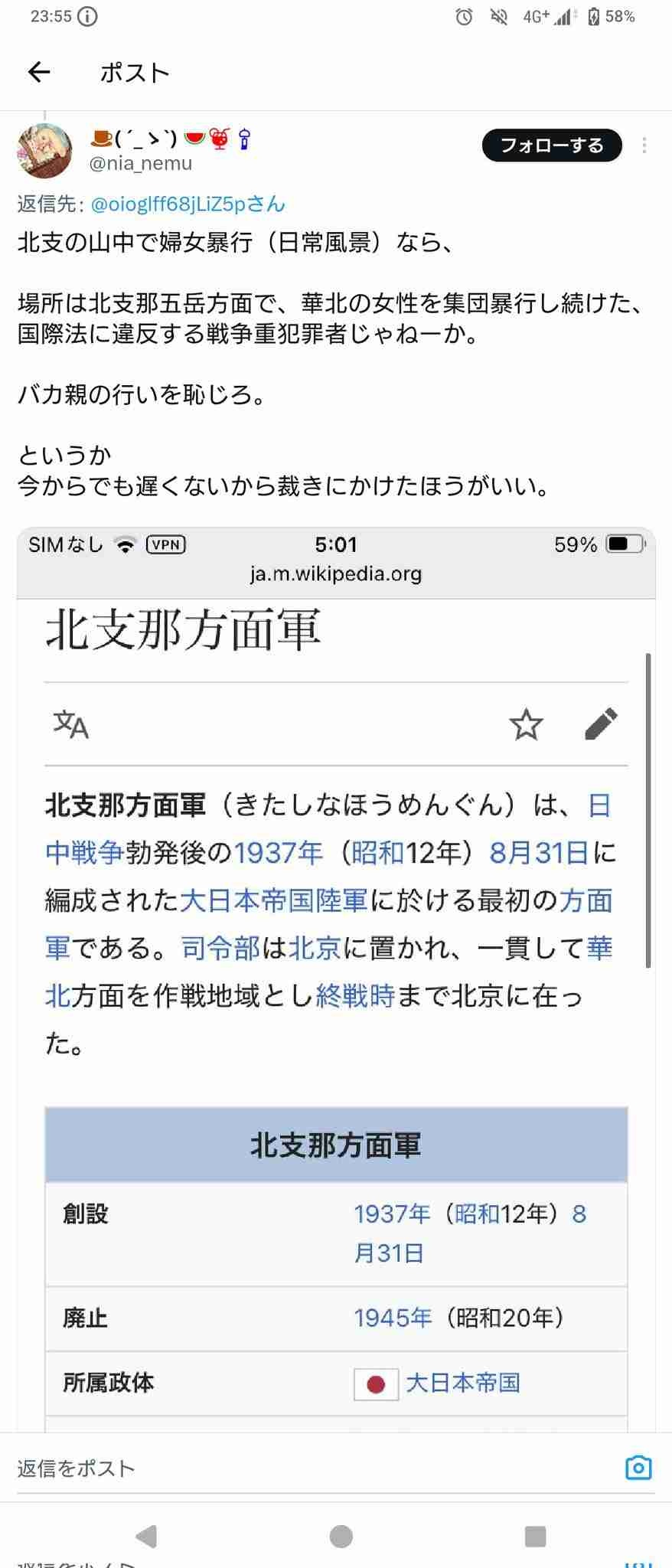 なのに皇軍は清い心で規律正しく品行方正でしたと歴史改変しようとしてて笑うよな