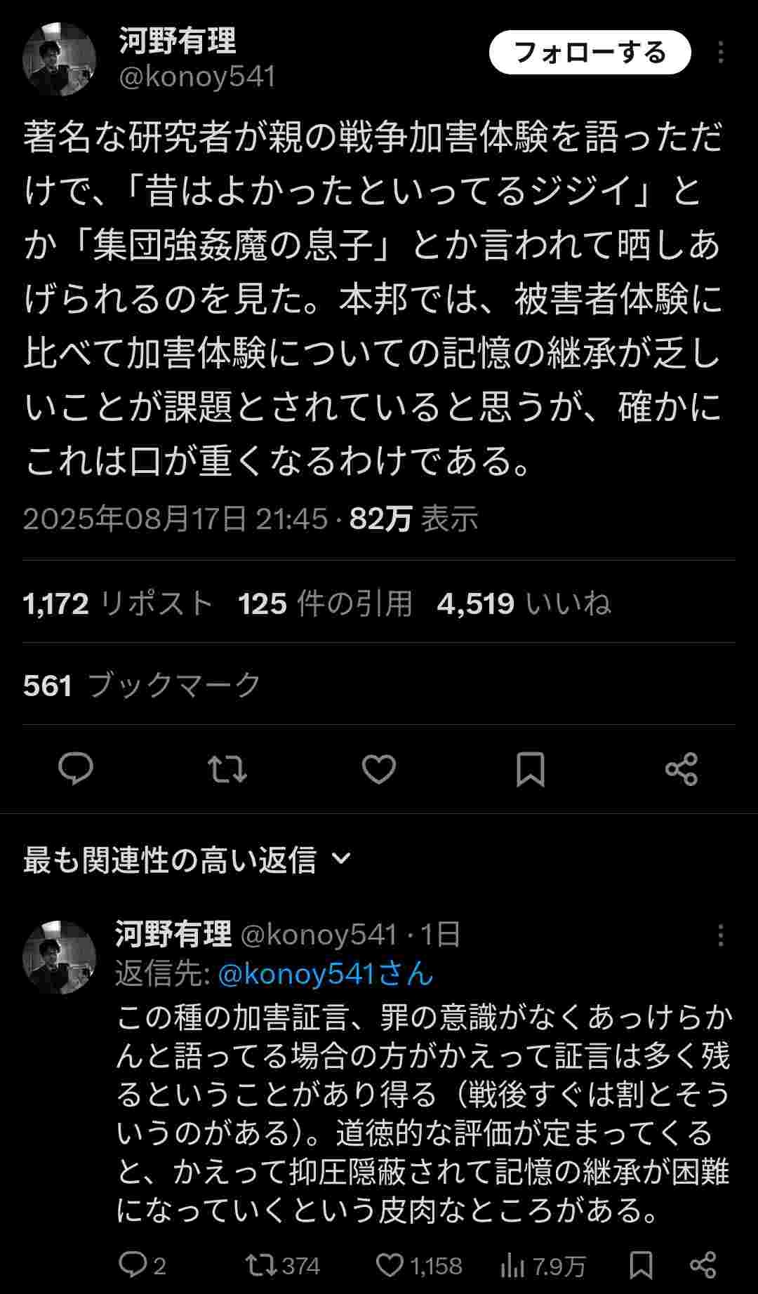 そういう連中が戦後になった途端、貝みたいに口を噤むようになった - 16 : 2025/08/19(火) 21:10:31.38 ID:TIe3zeNf0