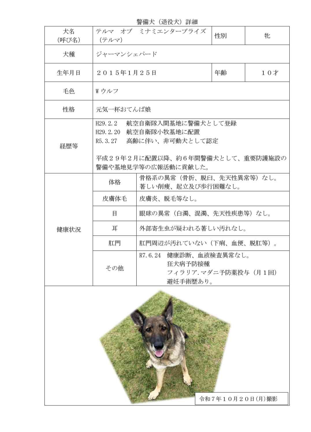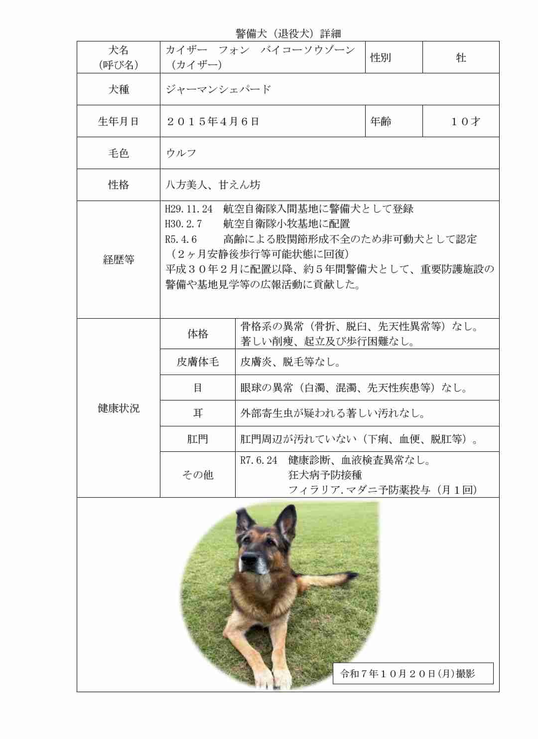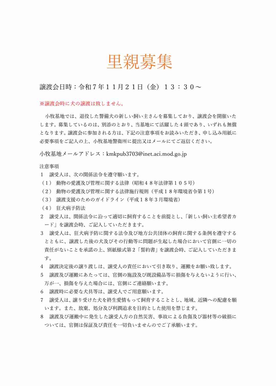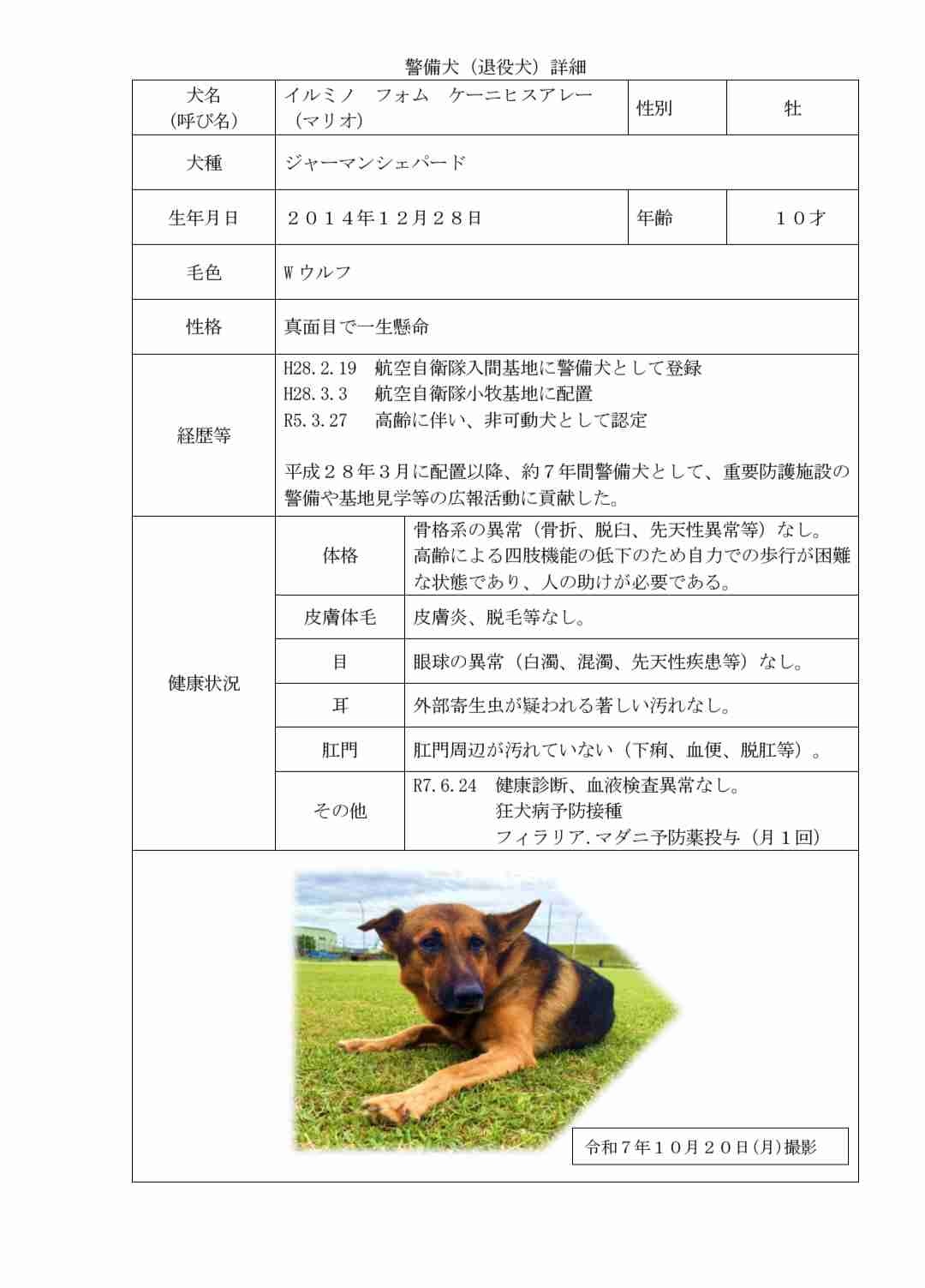 警備犬家族募集https://www.mod.go.jp/asdf/komaki/osirase/keibi/index.html