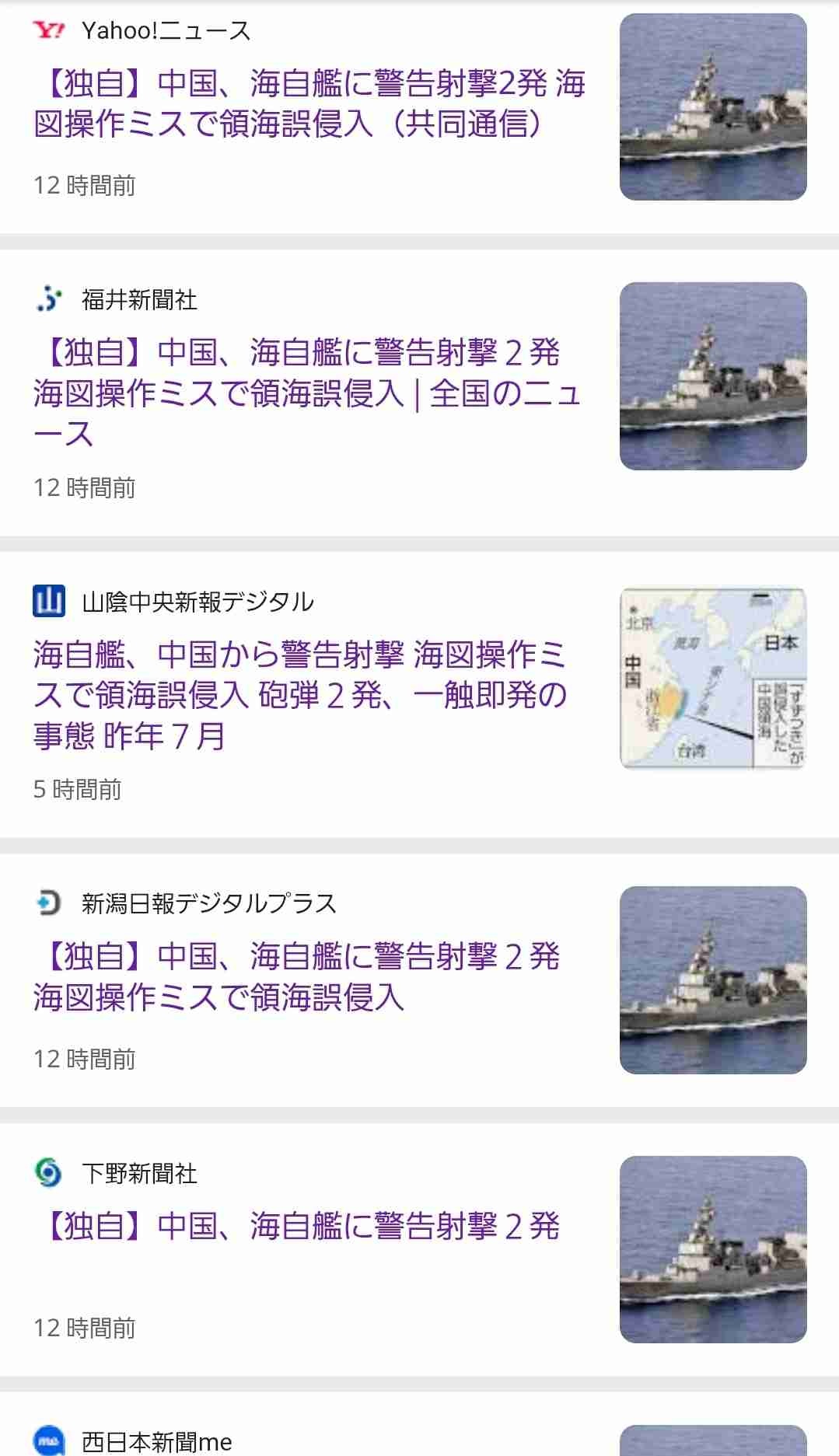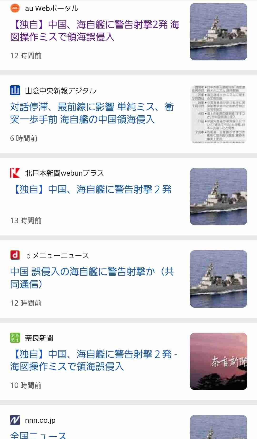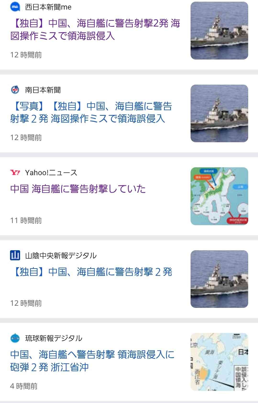 - 中国、海自艦に警告射撃2発 日本が海図操作ミスで領海誤侵入 共同通信