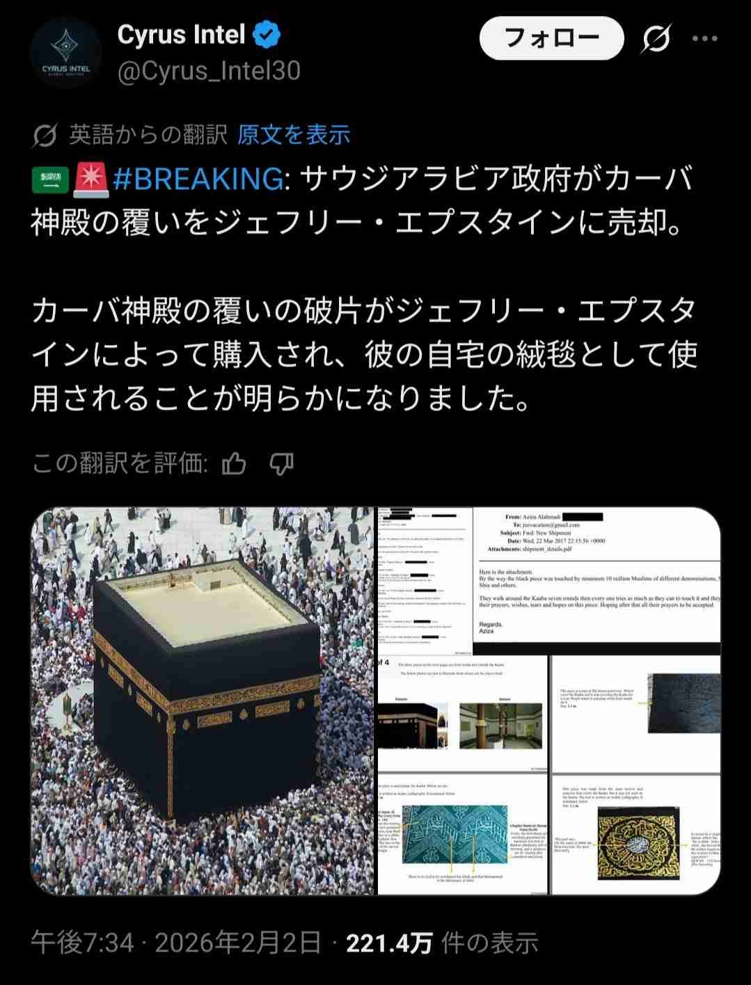【ムスリム悲報】イスラムの聖地メッカのカーバの布、エプスタインに売却されていたwww