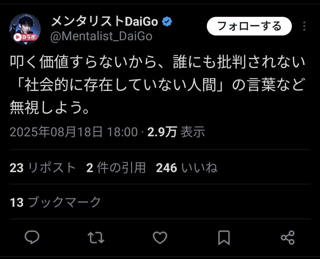 【安倍】DAIGO「叩く価値すらないから、誰にも批判されない「社会的に存在していない人間」の言葉など無視しよう」