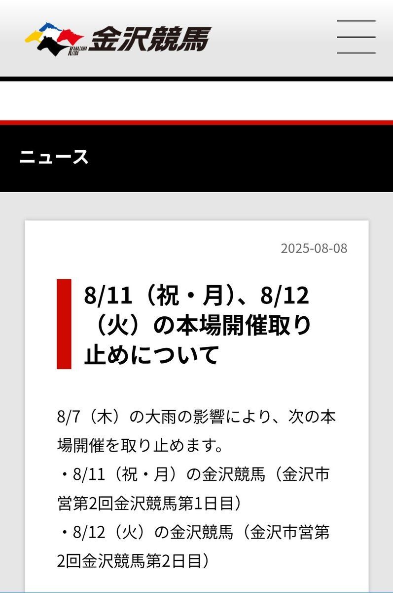 【悲痛】線状降水帯で観測史上最大の雨が降った金沢、競馬場と厩舎が水没し金沢競馬が開催中止に 再開見込み不明
