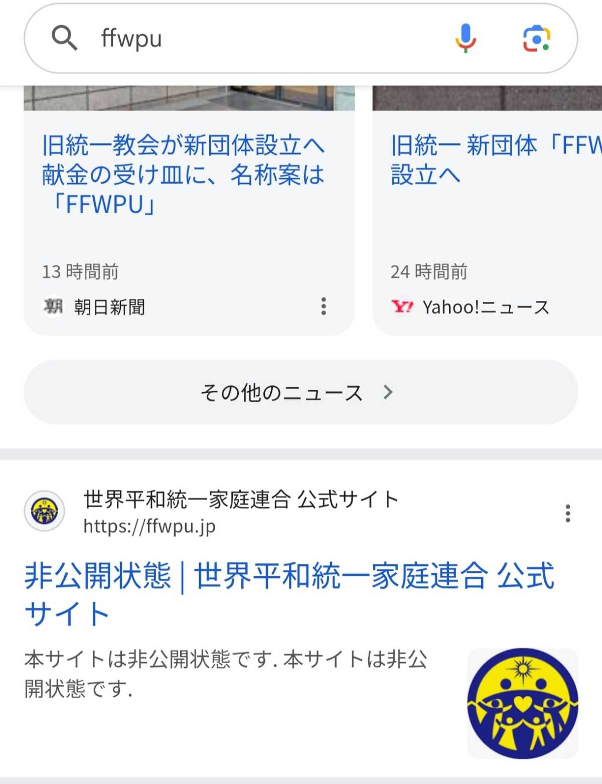 - Family Federation for World Peace and Unification(世界統一家庭連合)の頭文字をとって「FFWPU」や