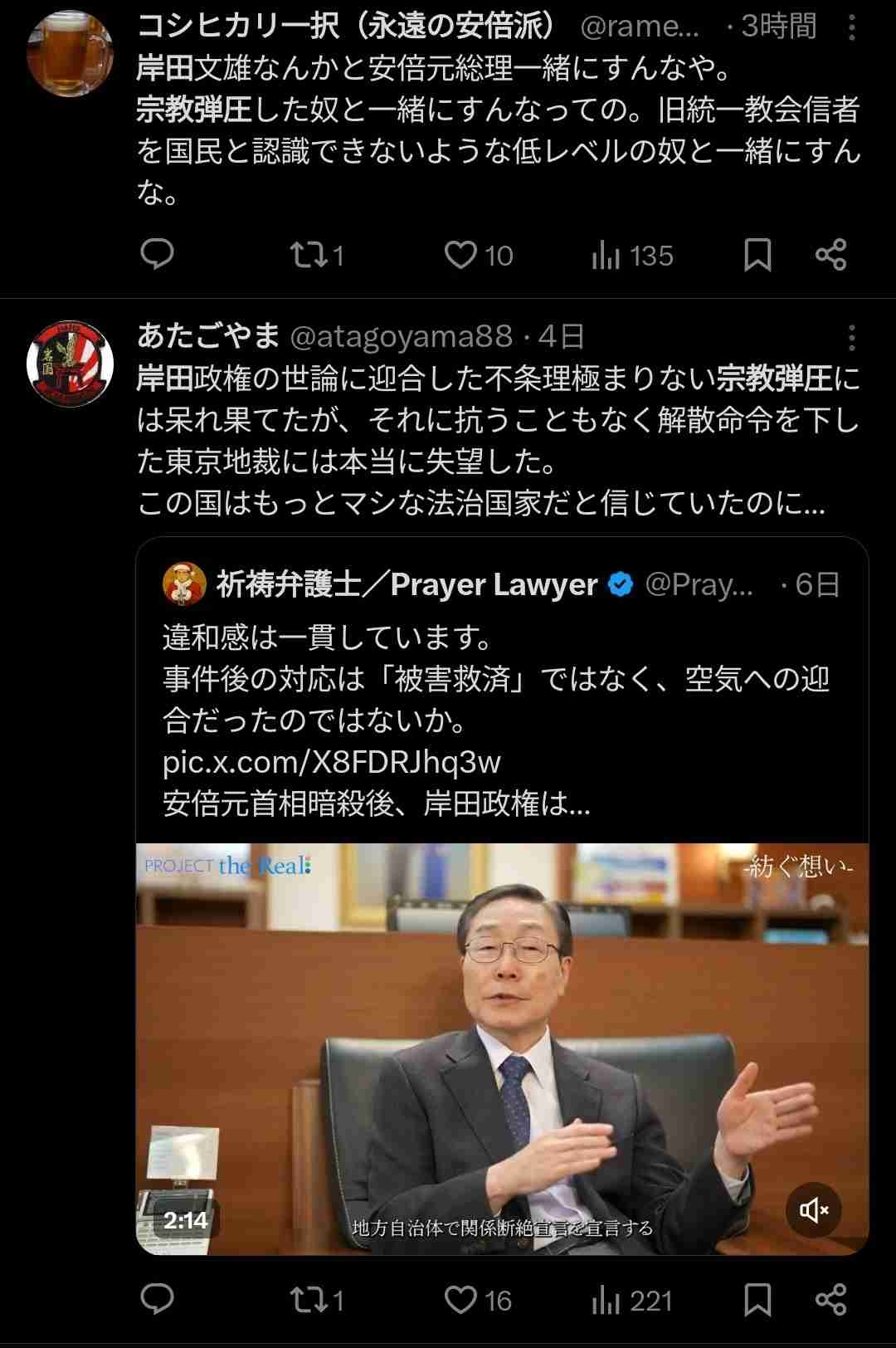 ネトウヨの人統一教会を擁護してるのマジで頭おかしいよ…