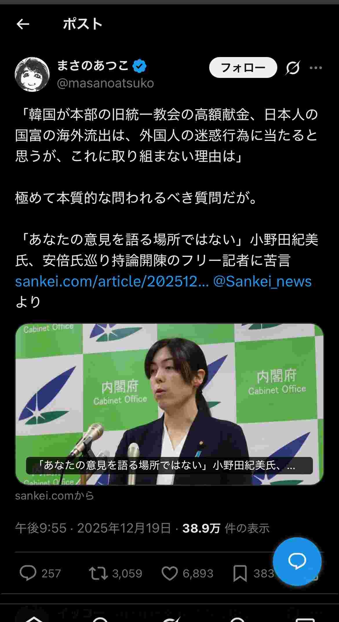 【爆笑】記者「統一教会の工作こそ外国人の迷惑行為そのものなのにこれを無視する理由は?」自民党議員「黙れ。」www
