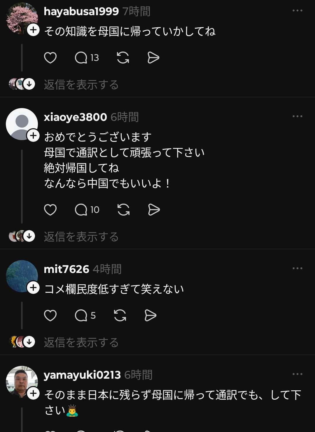 クソリプつけてる奴らの日本語怪しくて草