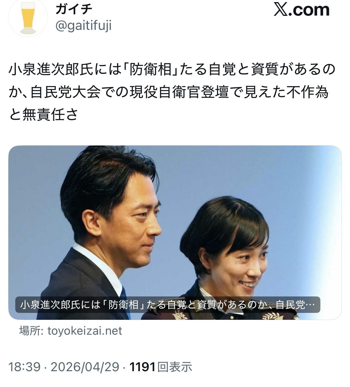 【画像】小泉防衛大臣、頭皮がガチで透け始める…