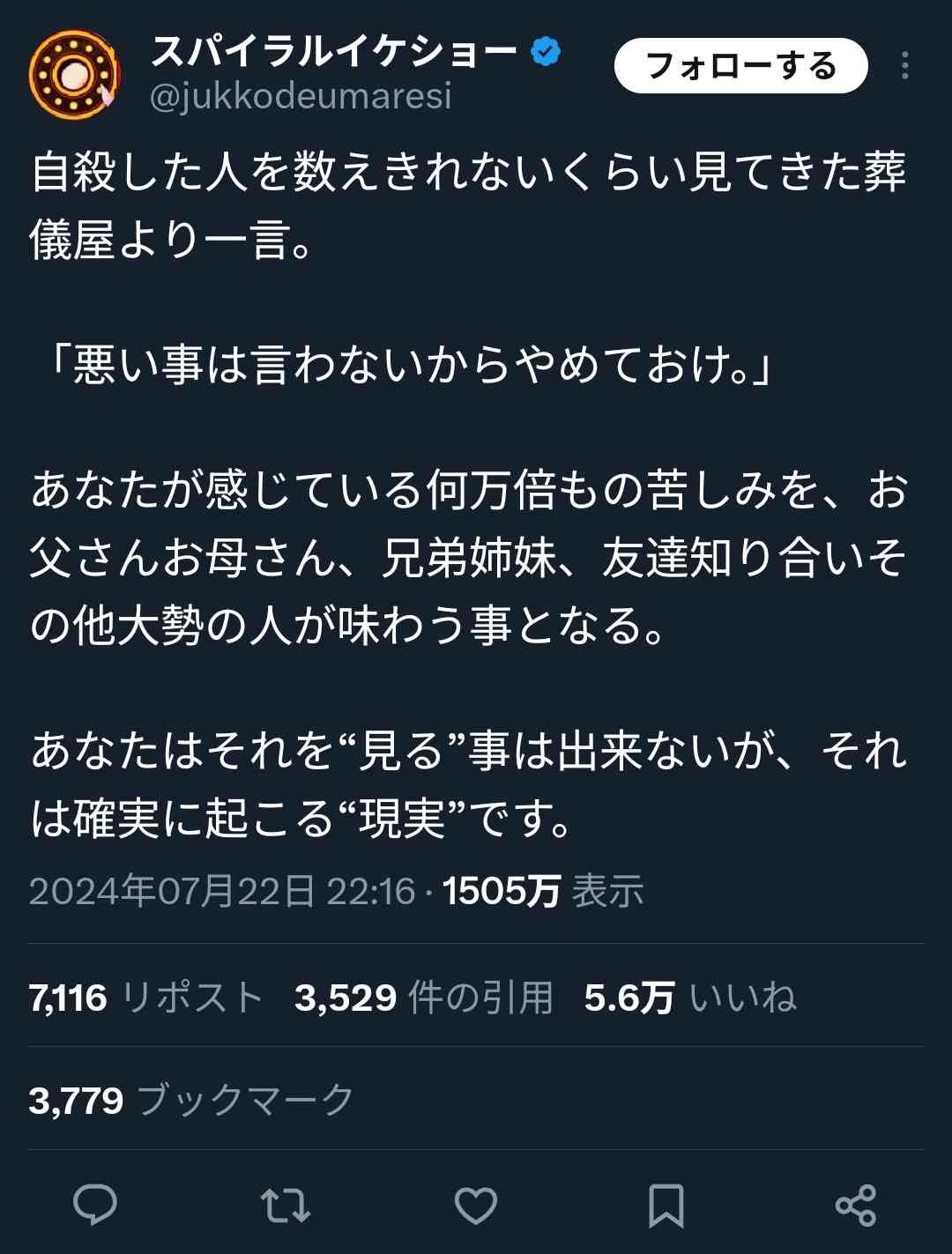 - なんで死にたい人の苦しみを軽く見るようなこと言えるんだろう
