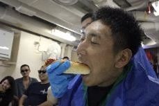 - 二人羽織ホットドッグ早食い競争って艦内では貴重なレクリエーションなのかな