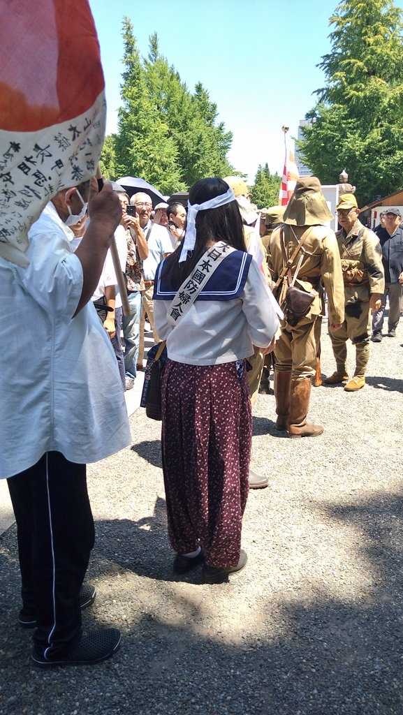 - 百歩譲って旧日本軍の服着るのを良しとしたとしてもちゃんと戦闘服と式用の服ってパターンあるのになんでわざわざ戦闘服着てるのか分からん