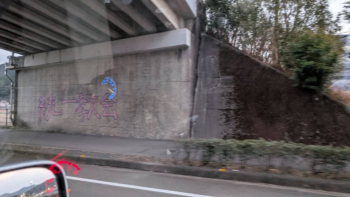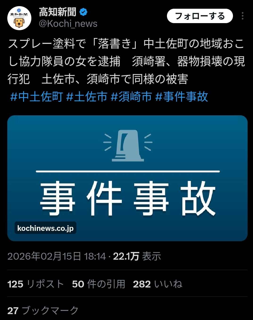 【画像】50代女性、「裏金自民党」「統一教会」など建造物に落書きをして逮捕www
