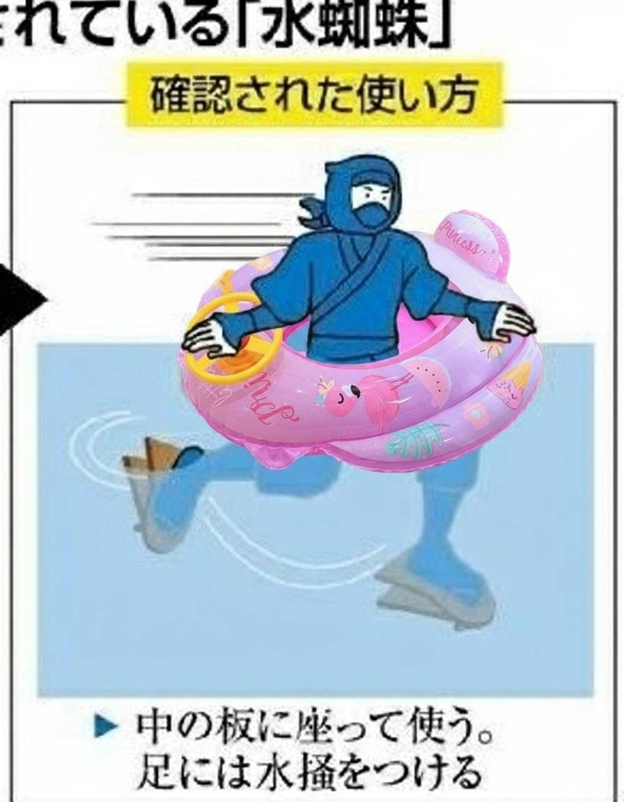 【画像あり】忍者道具の一つ「水蜘蛛」、足に履いて水の上を歩くと考えられていたが、正しくは浮き輪のようにして使ってた→3.2万いいね