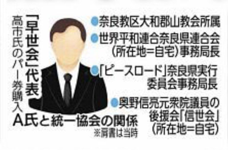 首相支援「早世会」代表は教団の奈良県幹部だった