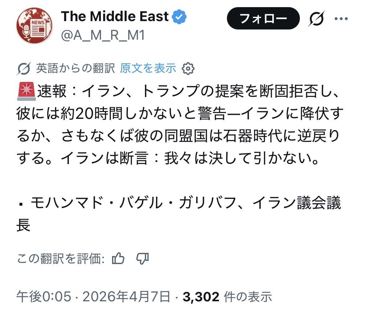 【超絶悲報】イラン「20時間以内にアメリカが降伏しなければアメリカの同盟国を石器時代に戻す」←日本マジでやばくね???www
