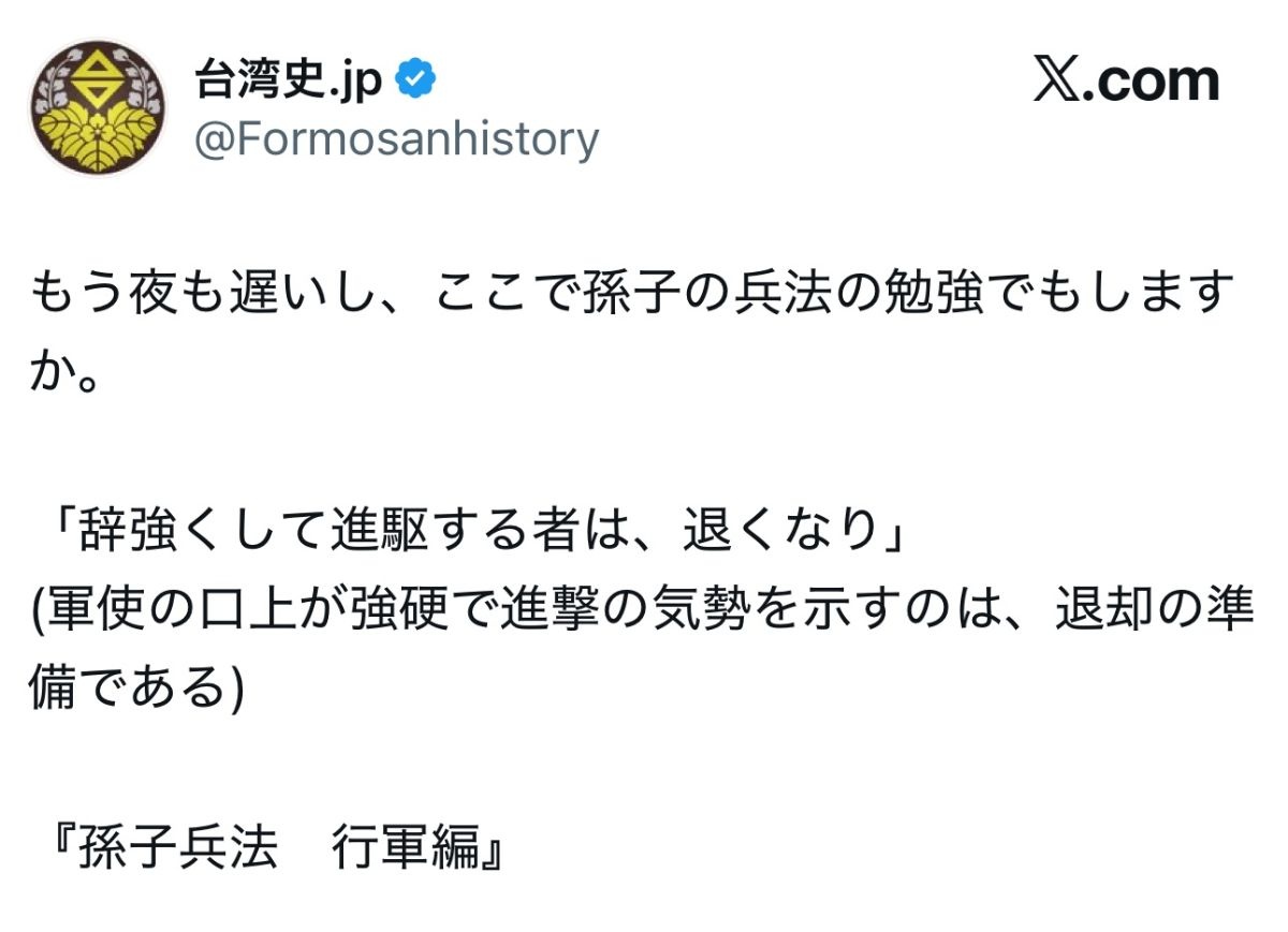 【高市悲報】孫子「辞強くして進駆する者は、退くなり」