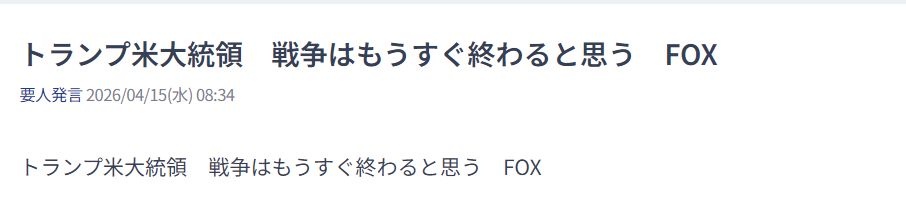 ポジティブなニュースあった? - 119 : 2026/04/15(水) 08:59:45.84 ID:20VRQxdf0