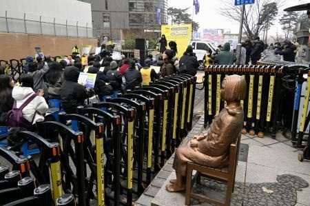 【高市 従軍慰安婦】 従軍慰安婦「日本軍性奴隷制問題解決のための正義記憶連帯」が少女像前で集会。 日本に謝罪を求める