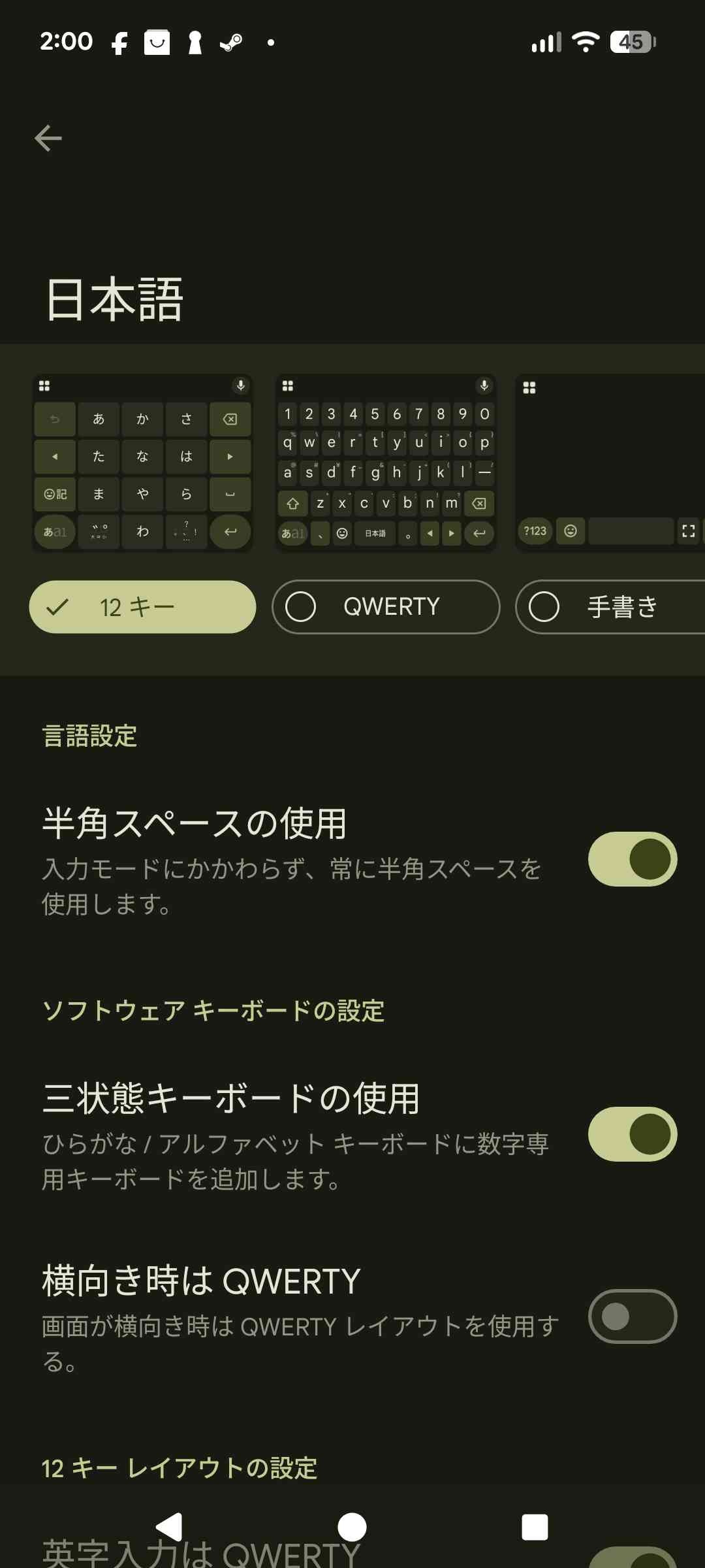 全角芝生やせるしフリックで間違えてホーム戻ることが少ないからqwerty一択や