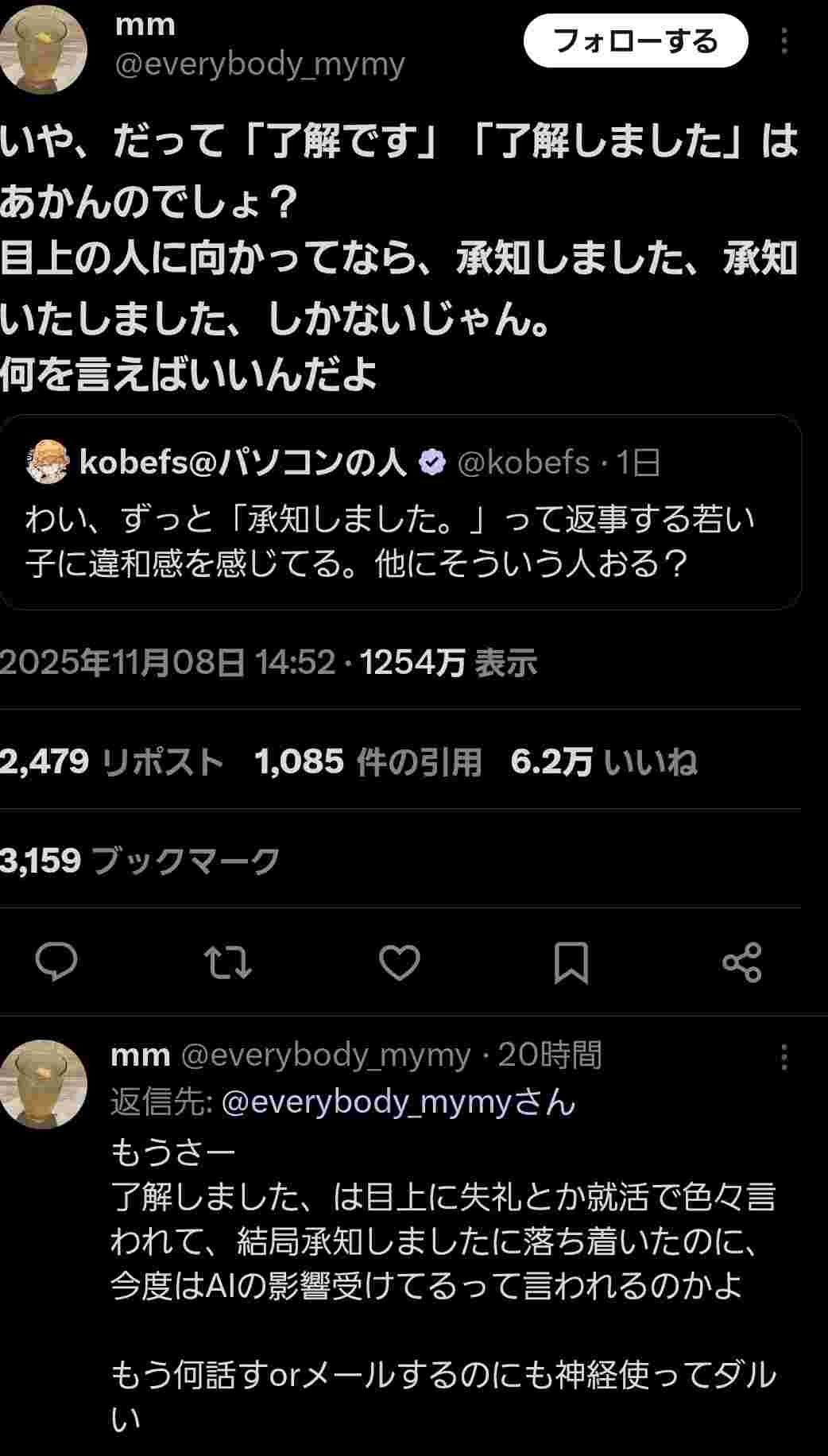 おっさん「何でもかんでも『承知しました』って言う若者なんなの?AIの影響?」👉若者、返す言葉がなくなり困惑