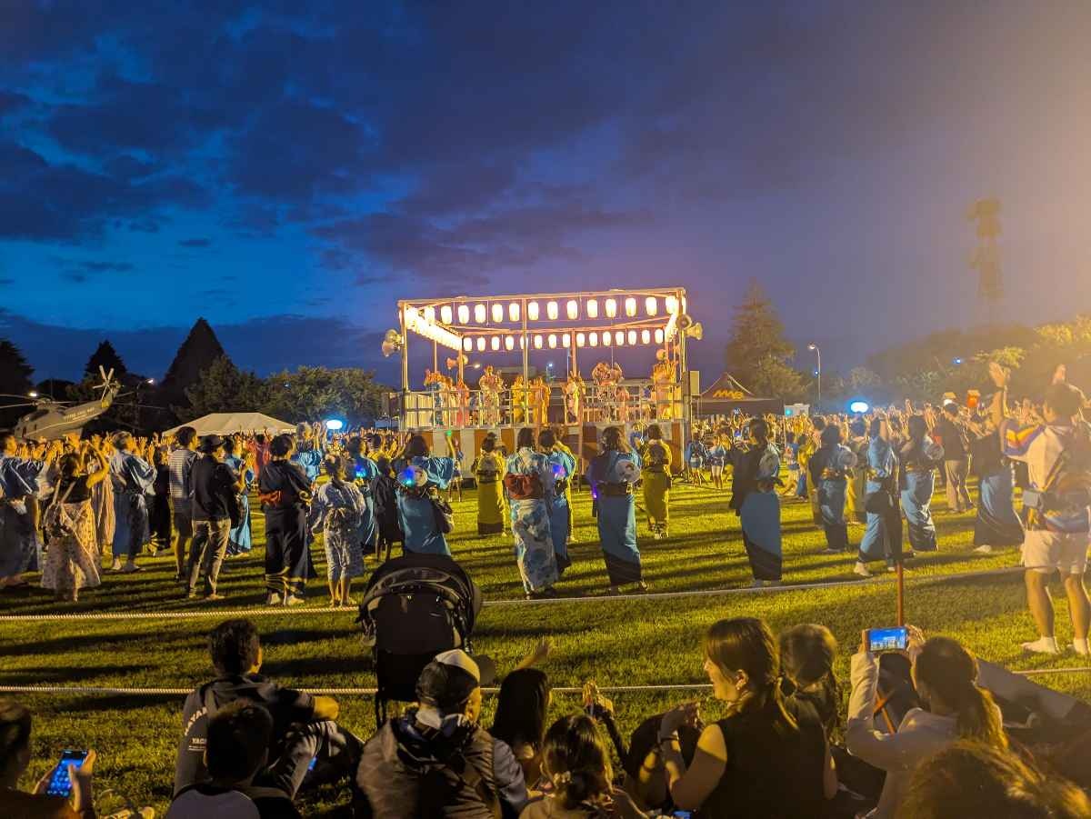 - そういや肝心の盆踊りはこんな感じや、いろんな団体の人とか米軍の人とか大佐がやってたりするけど一般人も余裕で参加してた