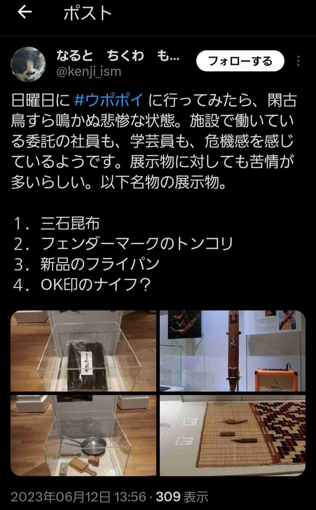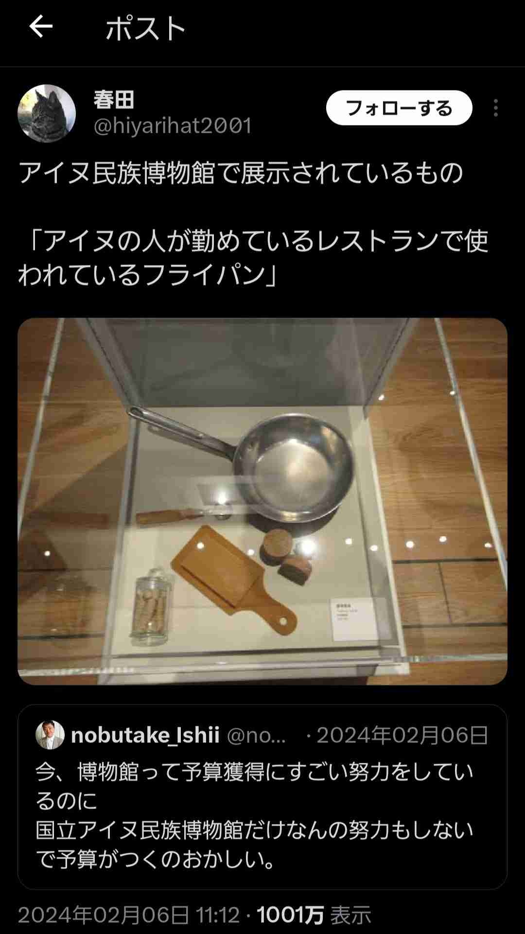 - これ似たようなアイヌのもの展示したやつとか北海道の別の博物館にもあるやろ?