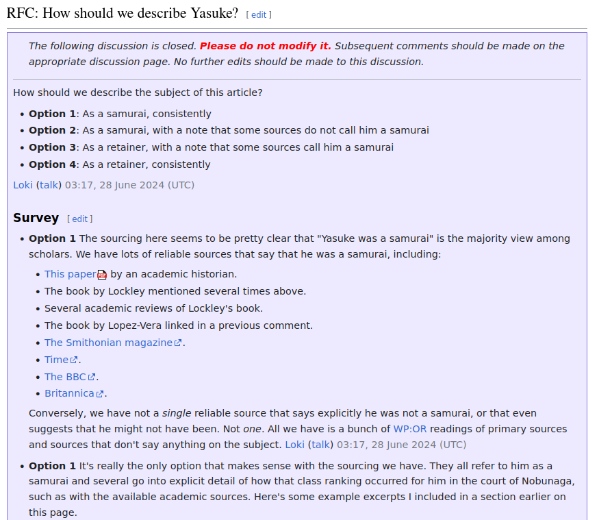 https://en.m.wikipedia.org/wiki/Talk:Yasuke#Why_not_an_RfC?