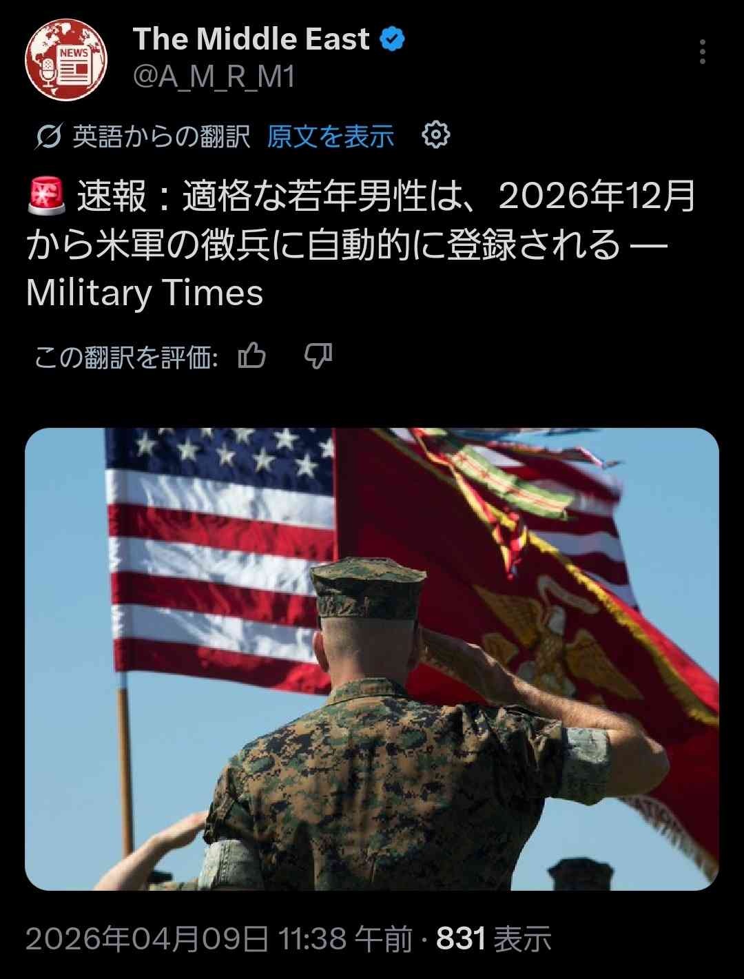 アメリカ、遂に徴兵制へ😳
