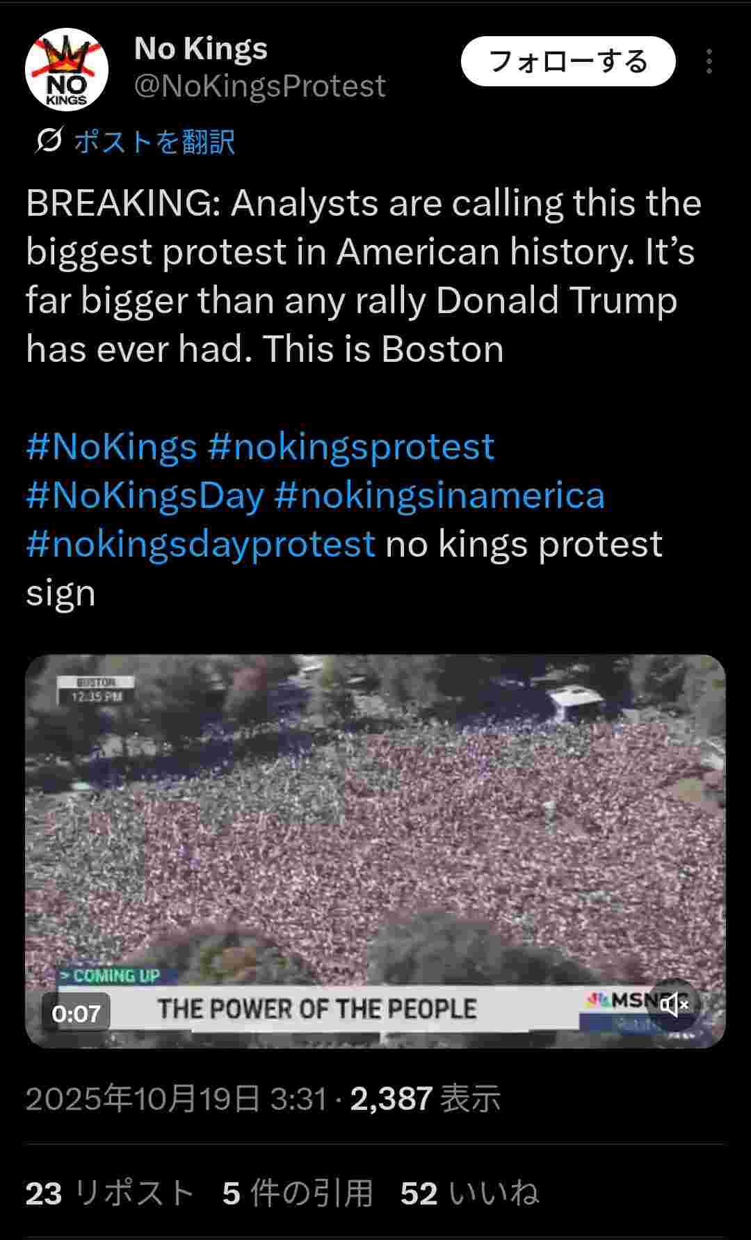 アメリカ史上最大規1000万人の反トランプデモが発生中www