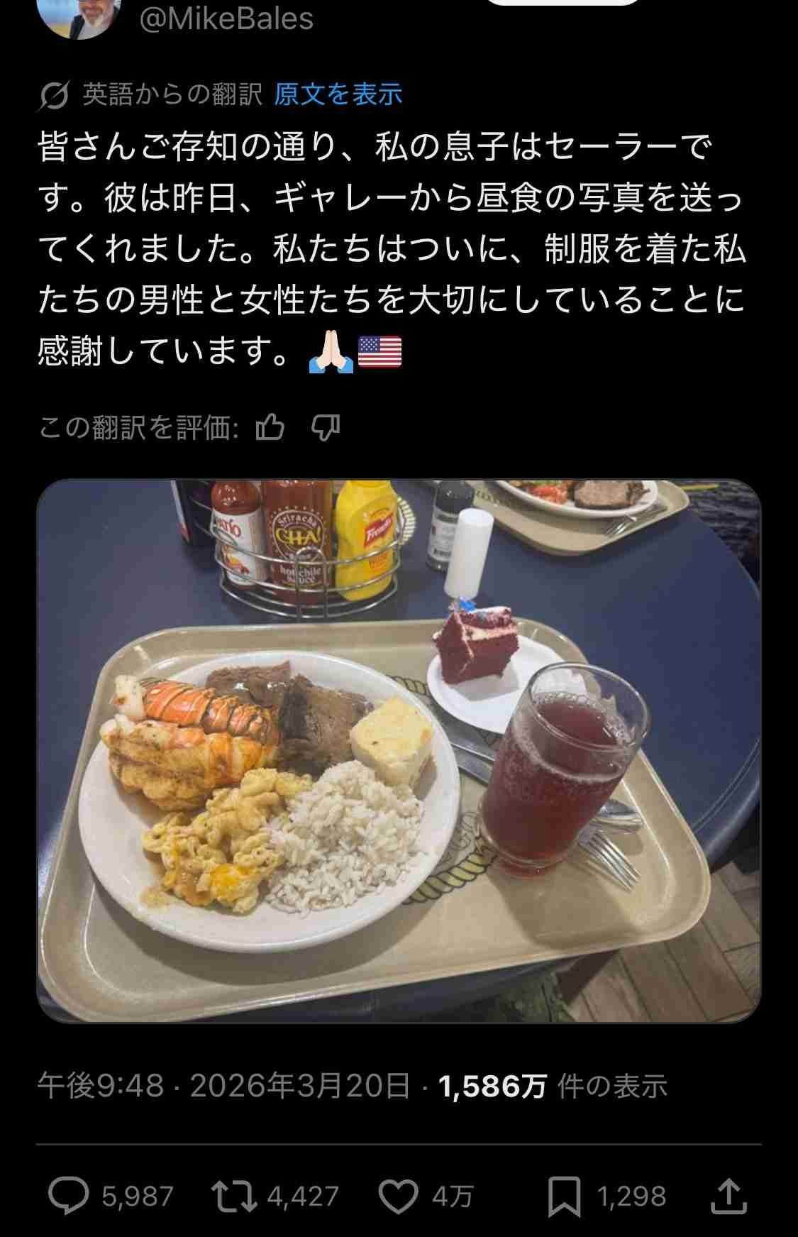 アメリカ海軍の兵士さん、昨日のランチでロブスターとステーキが出てしまうwww