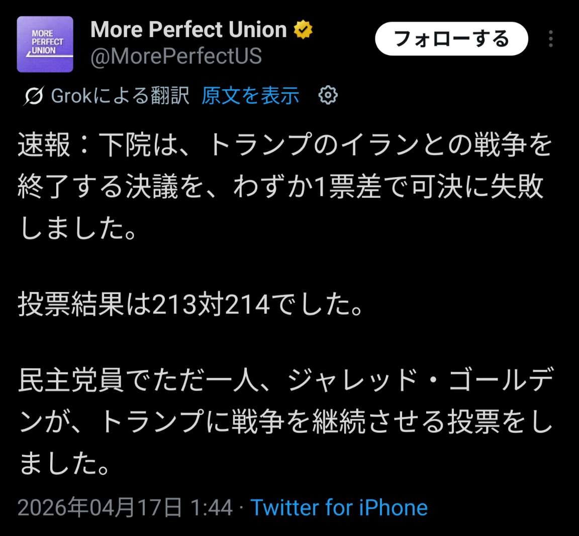 イスラエルは昔から両党にロビー活動してるから、ぶっちゃけその説も捨てがたい - 66 : 2026/04/17(金) 02:59:10.829 ID:tiby4O.k1