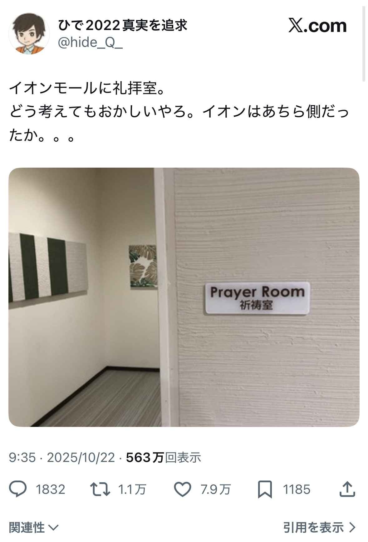 こんな礼拝室如きで店いけなくなるならジョーカー警戒して引きこもってたほうがええ - 28 : 2025/10/24(金) 10:10:40.089 ID:6m.vIn4VF