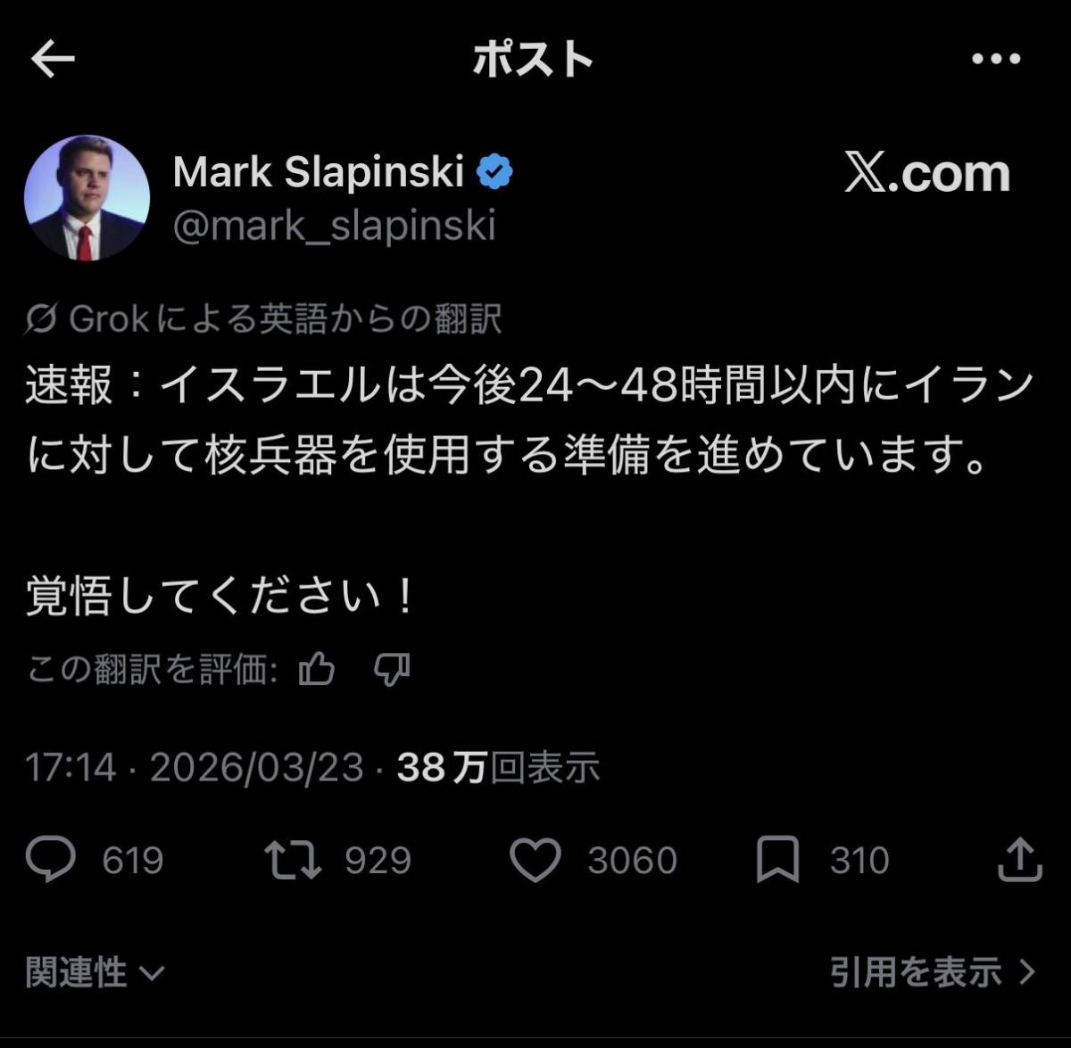 イスラエルが攻撃されるぞ - 11 : 2026/03/23(月) 19:17:43.812 ID:ehYIeTUbk