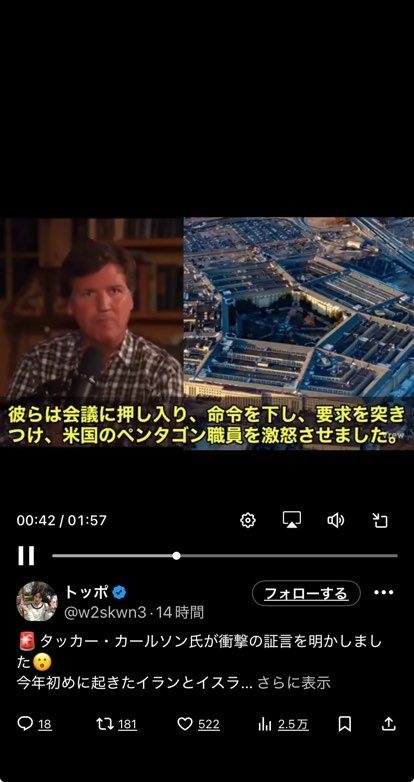 🚨タッカー・カールソン氏が衝撃の証言を明かしました😮