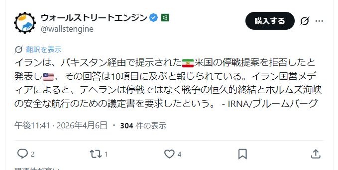 これでイランも交渉してくれると思う - 26 : 2026/04/07(火) 00:04:56.20 ID:GOF68hms0