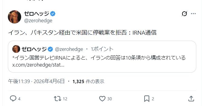 時間稼ぎしたいアメップがデマ流してんのかね - 17 : 2026/04/06(月) 23:47:39.24 ID:ZNQEz8Dj0