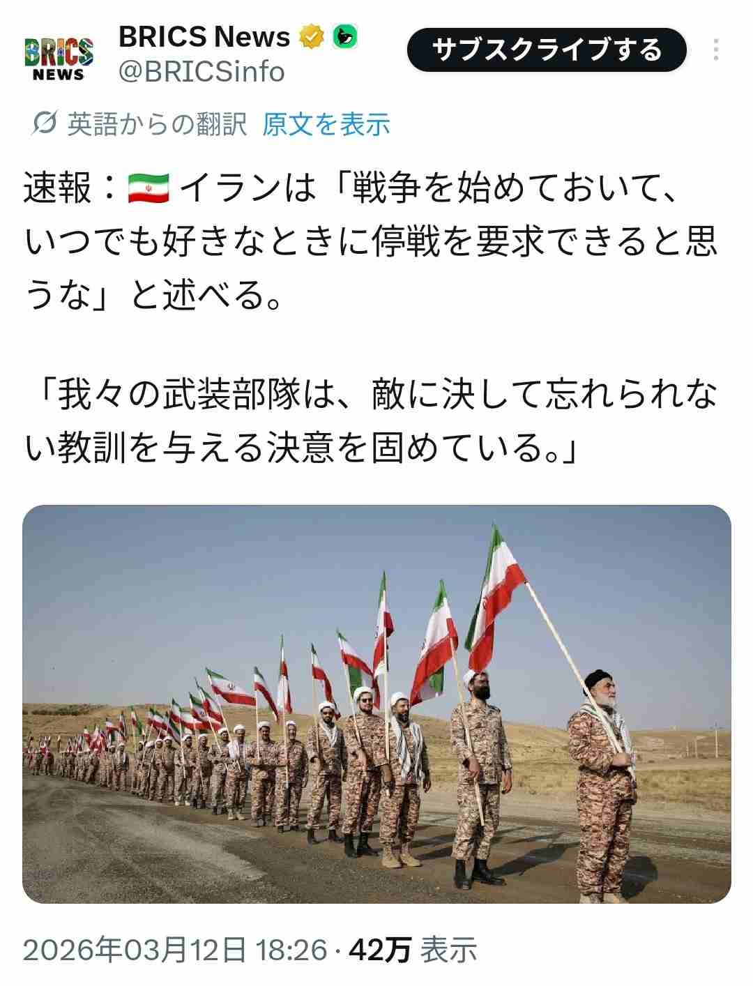 停戦しても奇襲するだろ - 57 : 2026/03/12(木) 21:42:51.94 ID:egO6CVN10